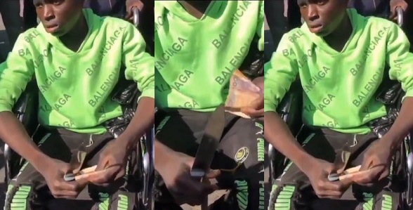 In the viral video, the thug can be seen holding the knife and N500 while being asked questions by protesters.