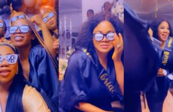 Watch as Toyin Abraham shows off dance moves during Toyin Lawani’s bridal shower...