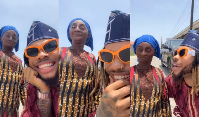“First man to make Aunty Ramota Smile” – Hilarious moment Poco Lee asked Aunty Ramota to peck him amused...