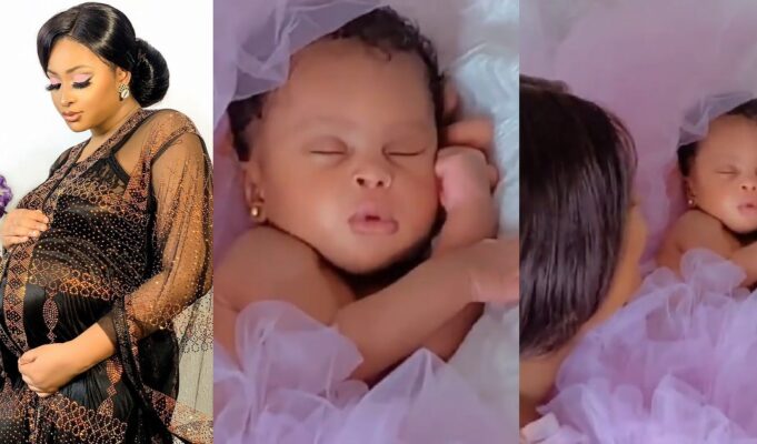 Actress, Etinosa Idemudia shows off her newborn daughter (Video)