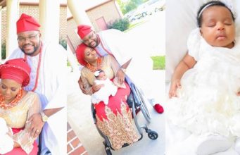 Physically challenged blogger, Lizzy and hubby dedicate their daughter in church (Photos)