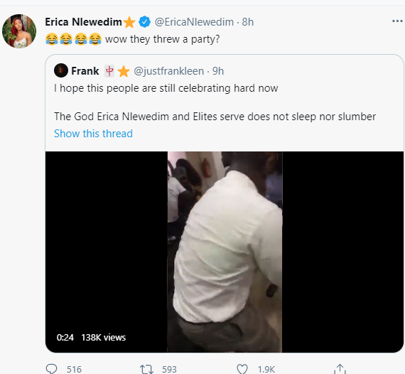 “Erica Nlewedim won, get used to it. And I will keep winning cos my God is bigger than your devil. Throw another party on 9th June. I even unblocked the haters cos you need to see me win! You’ll be playing your cry soundtrack at your next party, with only tissue on the menu.” She added.