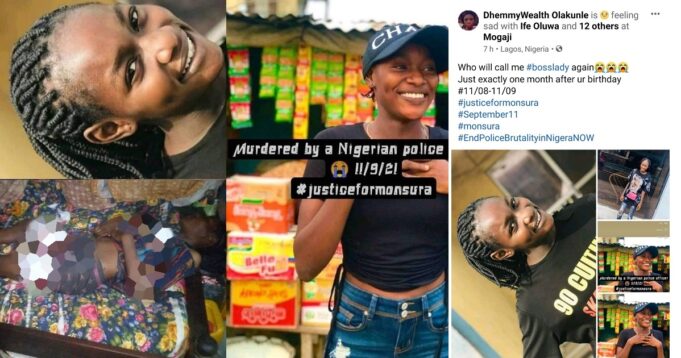 “Please help me get justice,” the sister wrote, adding, “The police shot her in our compound yesterday.”