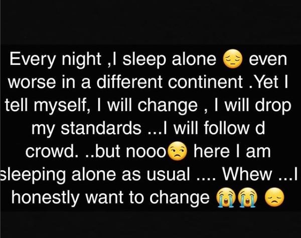 Moyo Lawal went on to say, ‘I have disciplined my self so much that I am literally fighting battles to undiscipline myself. In this generation, how will I ever find a husband without compromising’.