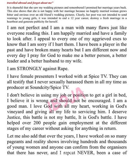 Mr. Ukpaa explained that he has worked for several pageants and reality shows and no one can say he has every molested anybody. He ended up by saying his legal team will file proper official reports in the coming days.