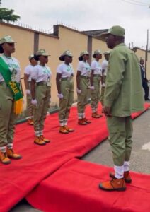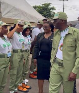 The governor was accompanied by the Lagos State NYSC Coordinator, Mrs. Yetunde Baderinwa, and other corps members who saluted and cheered him upon his arrival.