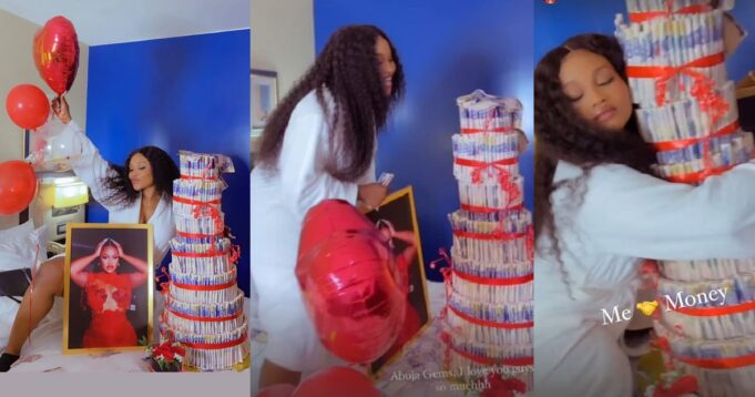 The fans of the curvaceous Big Brother Naija star fondly called ‘gems’, gifted her a huge money tower, a framed picture of herself, amongst several other goodies.