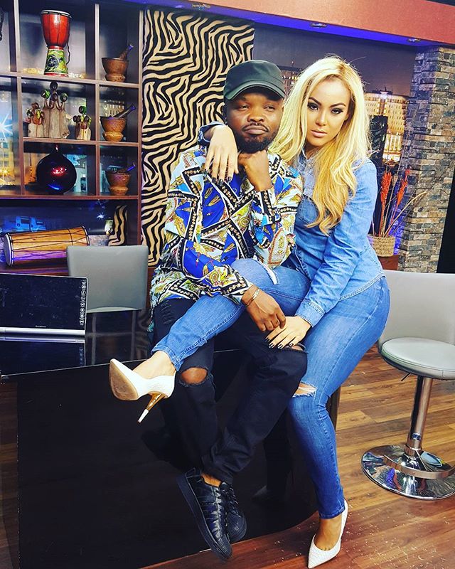 Model/actress Sarah Ofili is pictured on her knees, pretending to give fellatio – or in a much more understandable English – BJ… to Wazobia radio/tv host, Nedu.