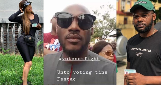 Celebrities like Falz, Toke Makinwa, 2face Idibia, Ay comedian and politicians like Bola Tinubu, Dino Melaye, Rotimi Amaechi and others as they voted today.
