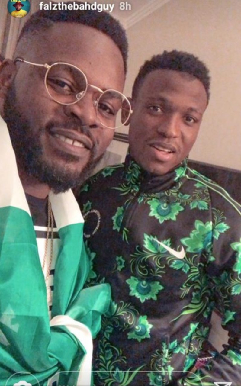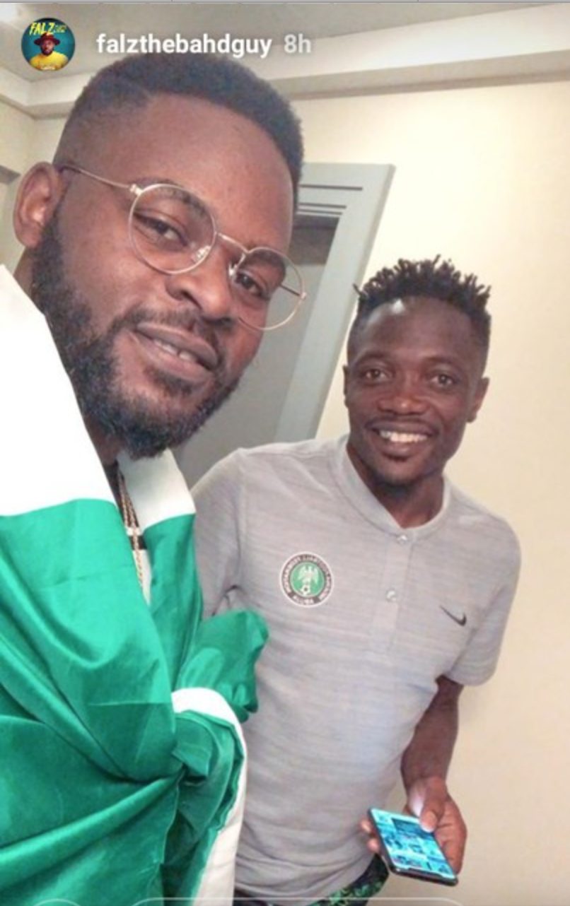 The “this is Nigeria” crooner Falz was spotted with Super Eagles star Ahmed Musa and other players at Russia as he uploaded pictures with him on his Instastory.