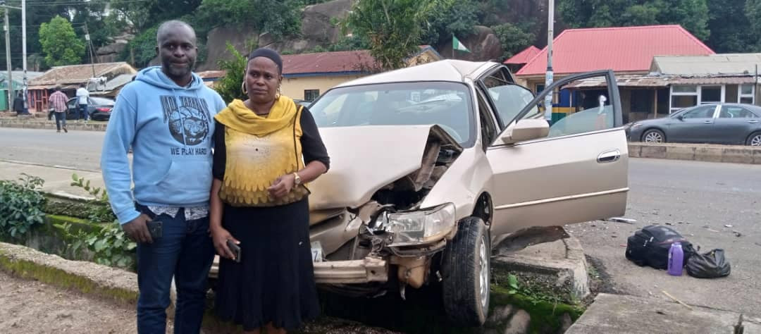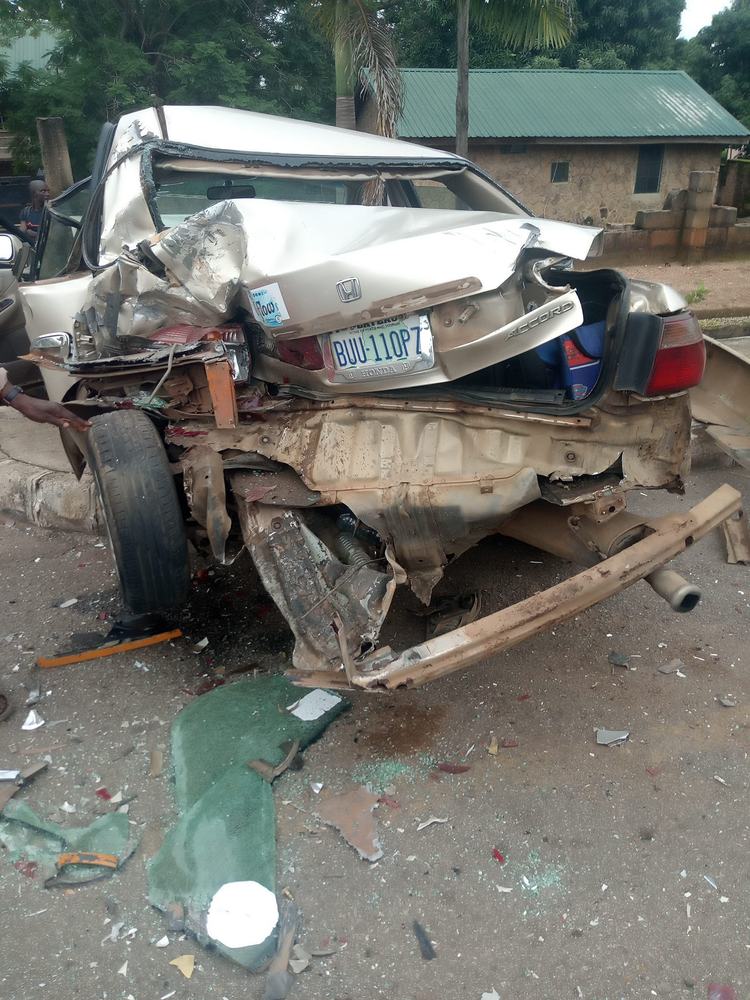 “MY WIFE AND MY THREE CHILDREN WERE RIGHT INSIDE THIS VEHICLE WHEN A TRAILER ON A HIGH SPEED DROVED INTO US THIS EVENING IN A HOLDUP AT HILL STATION JUNCTION, JOS. THIS IS QUITE UNEXPLAINABLE & UNBELIEVABLE BUT THE ALMIGHTY GOD IN HIS INFINITE LOVE & MERCY, DELIVERED US ALL AND GAVE US A RESOUNDING VICTORY OVER THE PLANS OF THE ENEMY. NOT EVEN A STRAIN OF OUR HAIR FELL TO THE GROUND. INDEED, THIS CAN ONLY BE GOD. HALLELUJAH! THANK YOU JESUS”. He wrote.
