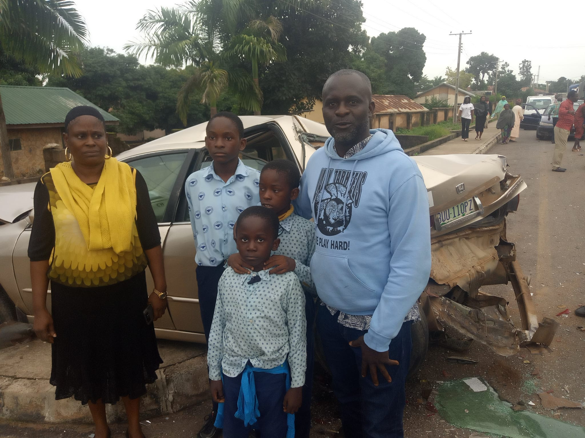 A family of five is lucky to be alive after a trailer rammed into their car along Hill Station Junction, Jos Plateau State on Monday, July 4.