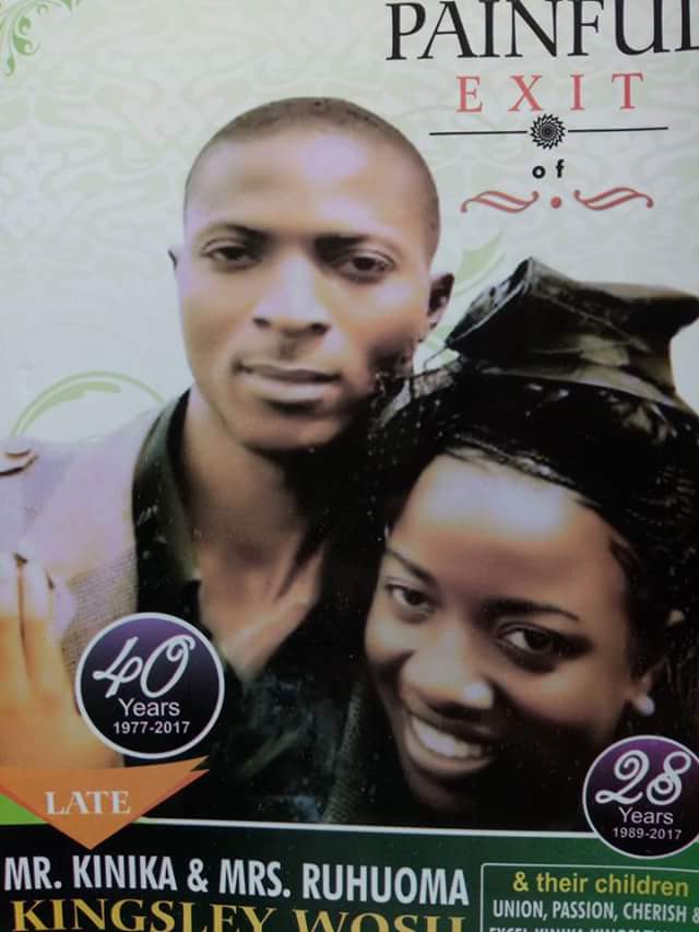 Mr. Kinika Kingsley, 40, his wife, Mrs. Ruhuoma,28, and their children died last month after inhaling generator fumes.
