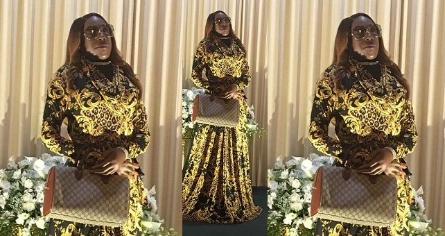 The lady was made to wear a long dress, scarf, a wig, sunglasses and even had a designer bag to match.