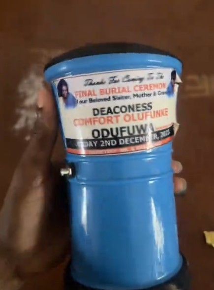 According to the lady, @oriaseams, a neighbour in their area gifted them a manual hand blender. However, what surprised everyone was the sticker on the item, which depicted a deceased person, indicating that it was originally distributed as a funeral souvenir in 2023.