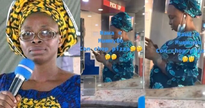 Controversial Nigerian clergywoman, Funmilayo Adebayo popularly known as Mummy GO, has in a viral video been spotted grabbing pizza.