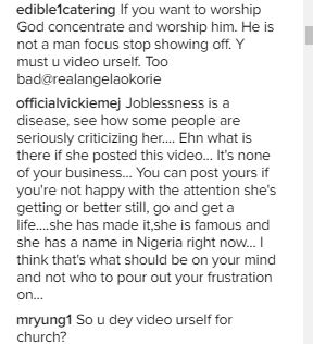 Nneka Chinenyeze if you support her NKO? What is you people’s business in this video. Some of us post all their daily activities on Facebook she did her own now wahala. To me it shows she is proud to be in the house of God even if it’s this one’s in her life.