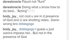 @Divine Dsixt Ahiwe you are just a mentally retarded whoop ass nigga… Do you even understand the word flaunt? How come religion be material things wey people dey flaunt… If you got nothing reasonable to contribute, better shut the fuck now… Moron.. Birds of the same feather like the silly celeb