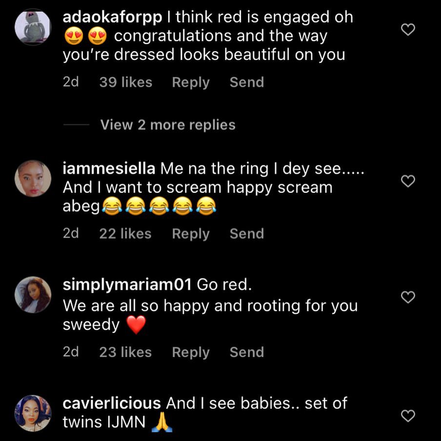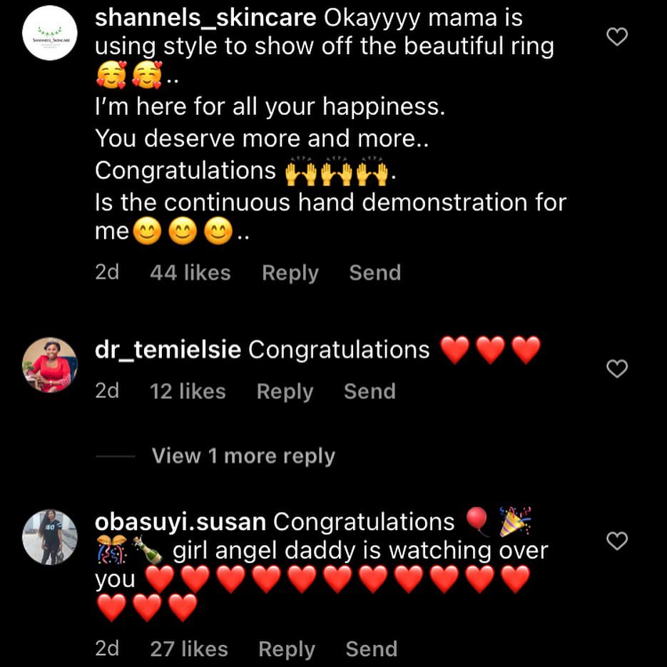 They went ahead to congratulate her on her engagement, while others queried her for still wearing her wedding band.