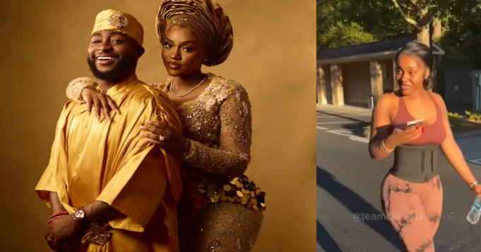 Chioma Rowland Adeleke, wife of Afrobeat singer, Davido has stunned online users, with fans in awe of her beauty and physical appearance as she strolls through their American neighborhood.