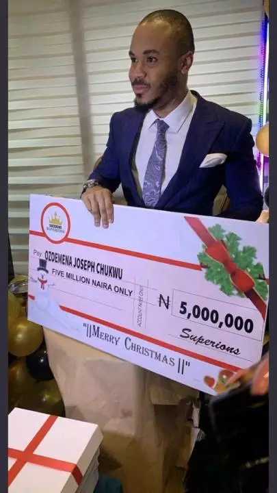 Christmas came early for Reality show star, Ozoemena ‘Ozo’ Chukwu, as his die-hard fans ‘Superions’ gifted him the sum of N5 million for Christmas.