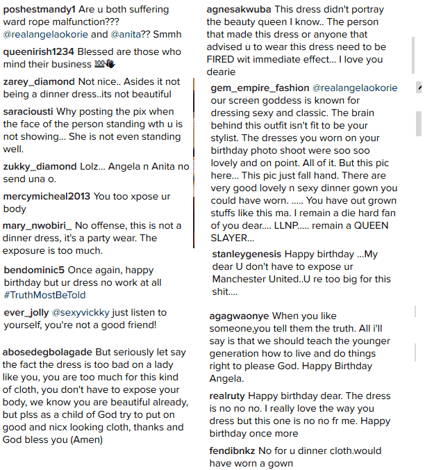 Fans aren’t taking likely with the Nollywood actress who had her birthday dinner last night – the quite revealing outfit caused a total stir as most of her fans are not one with it.