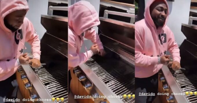 In the video which was shared on Instagram by Davido’s hype man, Specialspesh, the father of three was spotted passionately cleaning a barbecue grill.