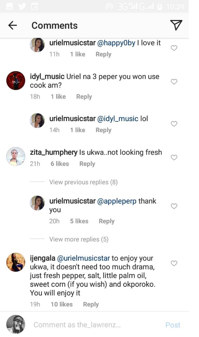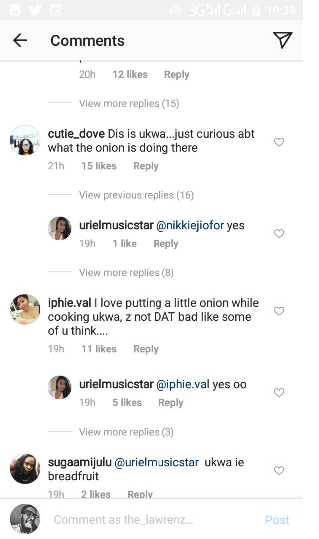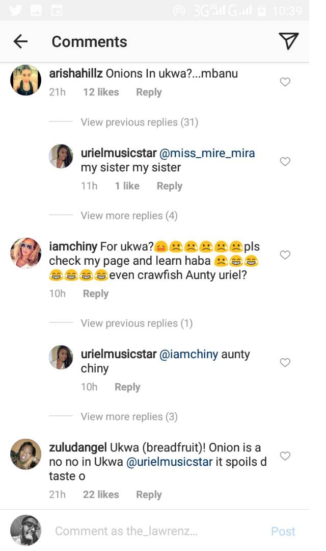 Uriel revealed that she used onion and seasoning cubes to cook breadfruit (ukwa in Igbo), the reality TV was then largely queried as fans claimed it would change the taste of the meal.