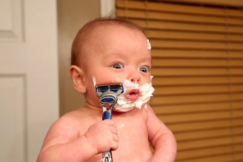 His parents decided that it was best they joked about his premature birth by stating that he was perhaps a little advanced for his age. Having a sense of humor, they proceeded to dress him up looking like he’s doing what grown ups normally do.