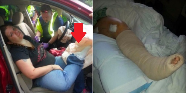 A local fire department is helping to spread her story to demonstrate the serious consequences of resting your foot on a dashboard.