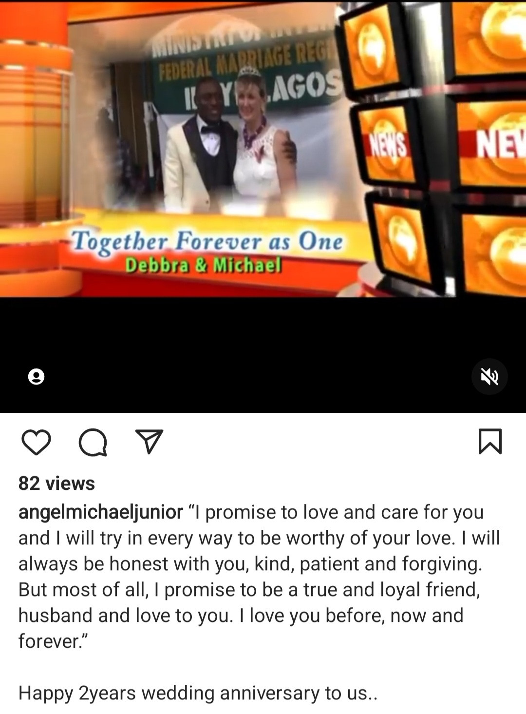 The young man identified as Michael, from Delta State, trended on the Nigerian web space in 2019, after he tied the knot with his older lover, Debby, who was born in Ireland but lives in New Zealand.
