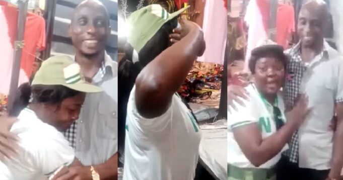 In appreciation the young lady who is now a graduate and serving her fatherland visited her brother in the market wearing her NYSC uniform.