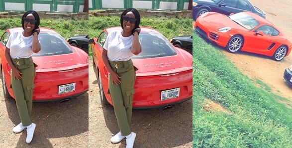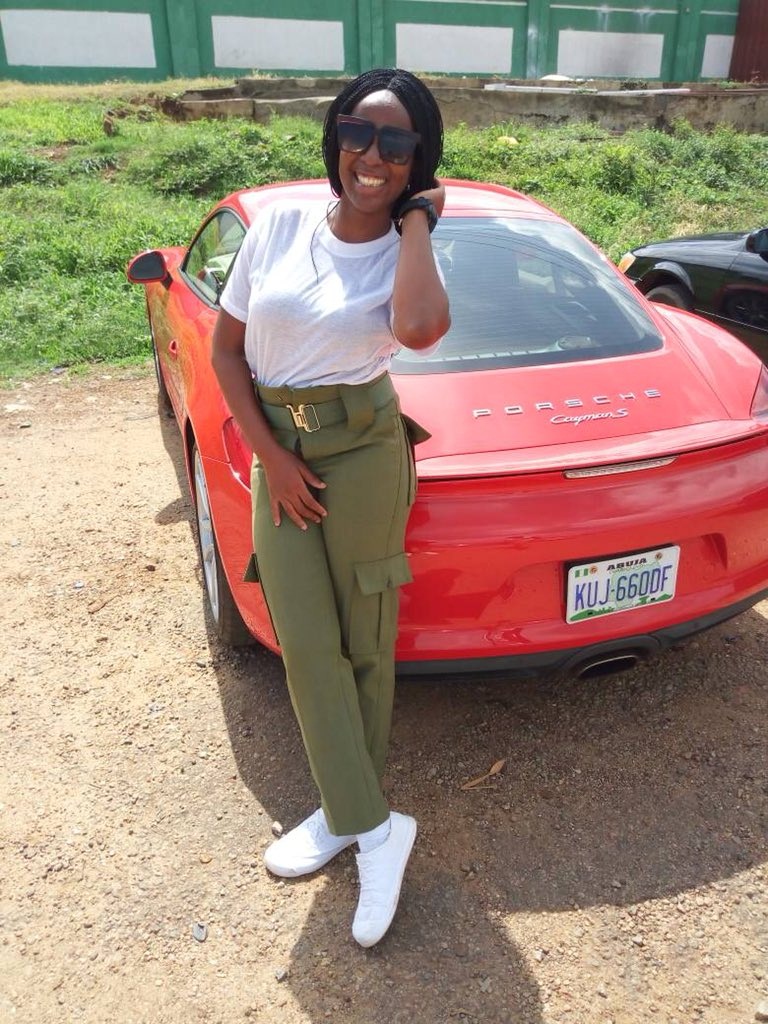 A Twitter user shared these photos of a female NYSC member who came for her clearance in a Porsche Cayman car in Abuja yesterday.