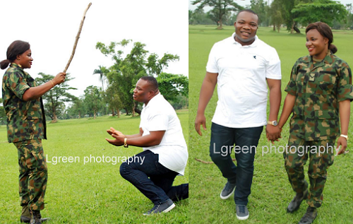 You all remember the soldier-themed pre-wedding photoshoot of a female officer and her boo that cause a stir online? Well the couple in a recent interview decided to share their love story and the idea behind the shoot. He said: