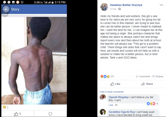 “Hello my friends and well wishers, this girl u see here is my neice pls am very sorry for going too far to correct her in this manner, am trying to see how she can be better person. I never meant to maltreat her, i want the best for her.