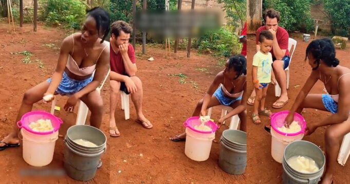The reaction of a Caucasian man to his Nigerian man making Fufu from scratch has generated different comments from internet users.