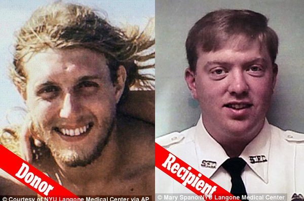 The father of five had the face of 26-year-old David Rodebaugh grafted on to what remained of his own features in August this year after the young man died in a cycling crash.