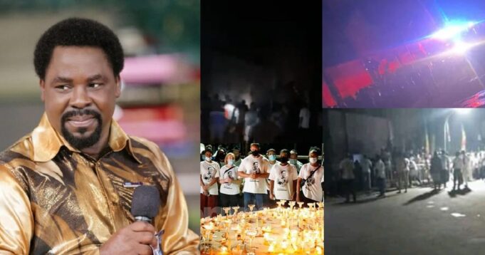 There was a fire outbreak at late TB Joshua’s church, Synagogue Church of All Nations, on Monday night during his candle light procession.