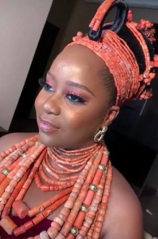 Ivie Ogbonmwan is said to be a HR and recruitment consultant. The traditional wedding of the couple which was held in Edo state, had some family members and friends in attendance.