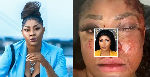 Stella Dimokokorkus has now shared photos of Angela Okorie’s face covered in blood after the attack that almost claimed her life.