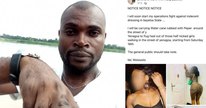 A Nigerian man has declared that he has taken it upon himself to start a fight against indecent dressing in Bayelsa state.