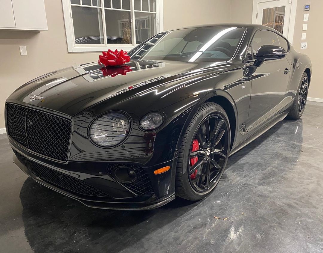The 42-year-old boxer took to Instagram to show off the luxury whips in two different posts and wrote: ‘ Gift to myself…the new 2020 Bentley Continental GT Mulliner.’