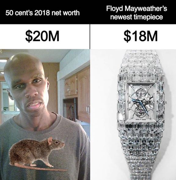 In a new reply to 50 Cent’s diss, Floyd Mayweather who topped Forbes’ 2018 highest paid athlete list, compared the rapper’s net worth to one of his writs watches, stating that they are not on the same level.