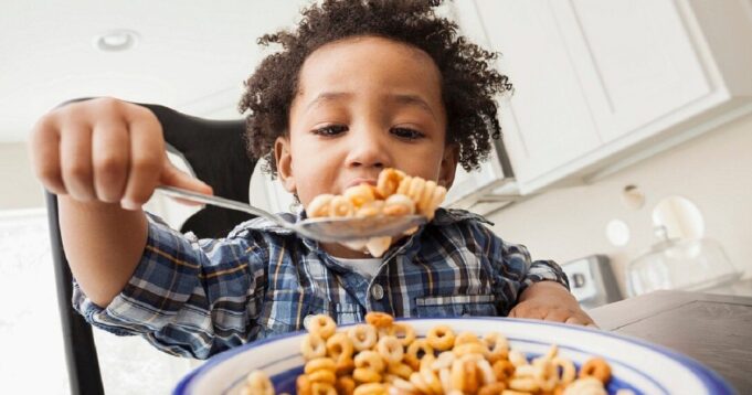 Adding that they have to lift the child whenever he is done eating because he can barely move himself after.