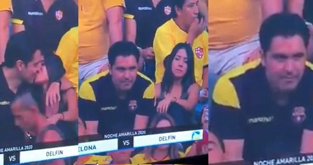 The public display of affection was captured by cameras at half-time of the friendly between Barcelona SC and Delfin in Ecuador on Saturday, and it didn’t take long for the video to make the rounds on social media.