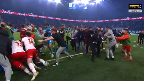 Well, there were more than the aforementioned elements in the Russian cup match between Zenit St. Petersburg and Spartak Moscow which happened on Sunday 27th of November, 2022 as the match plunged into quite disturbing chaos with punches, kicks and knees thrown on the pitch, and six red cards handed out by the referee.