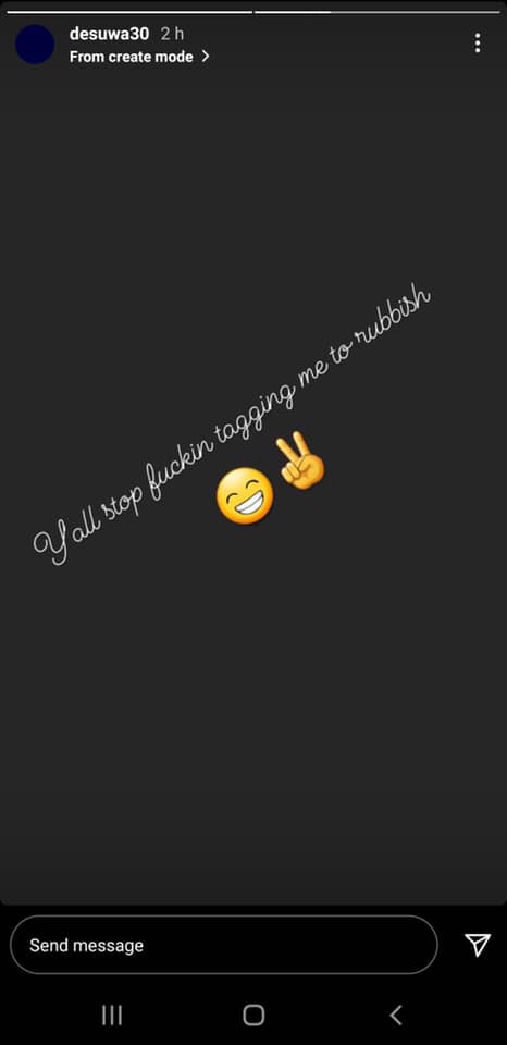 Reacting to this, Adesuwa warned people to stop tagging her to nonsense.