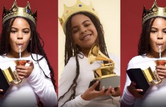 Blue Ivy pictured drinking from her Grammy Award plaque