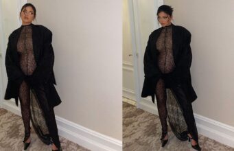 Pregnant Kylie Jenner showcases her baby bump in see-through lace jumpsuit (Photos)