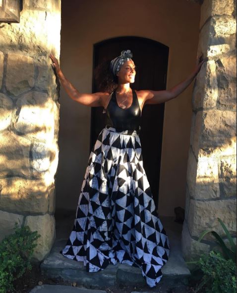 Alicia Keys gives the Ankara trend a different twist as she blends the African attire with a slice of Urban fashion – she rocks a quite long Ankara skirt with a white sneakers.